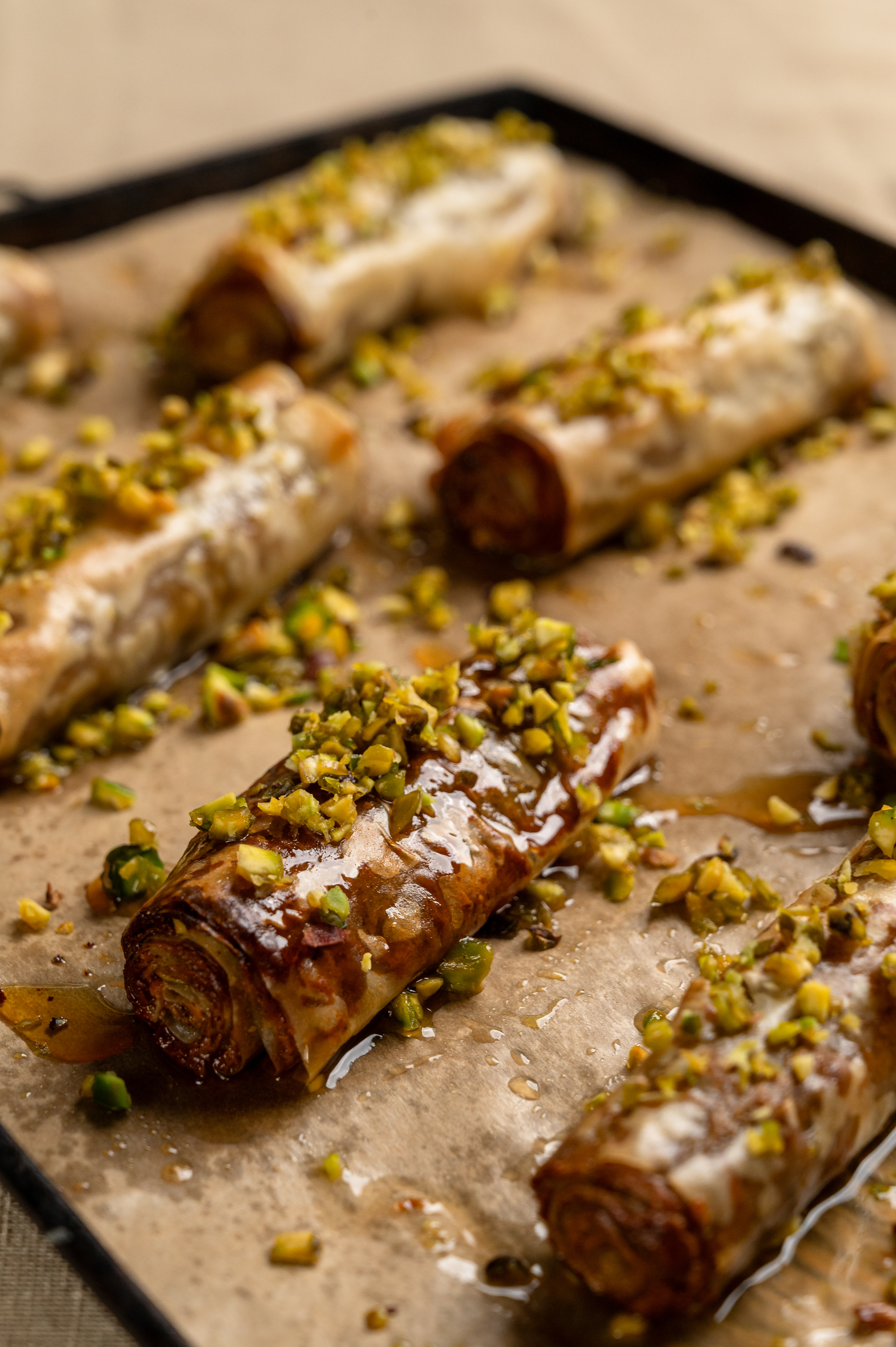 The focus is on ASMR and sensory detail — glossy drizzles, crisp cracks, creamy scoops, and rich textures captured in tight, mouth-watering close-ups. Everything should feel tactile and immersive.